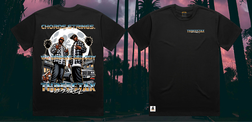 Step into the spotlight with the MOUNT UP tee — a bold anthem in fabric form from THREESTAX’s EXPLICIT LYRICS collection. This drop isn’t just apparel, it’s a movement. Featuring the signature “THREESTAX” chest hit and a full-back graphic that fuses musical grit with streetwise elegance, this tee pays homage to the rhythm of resistance and the chords of community